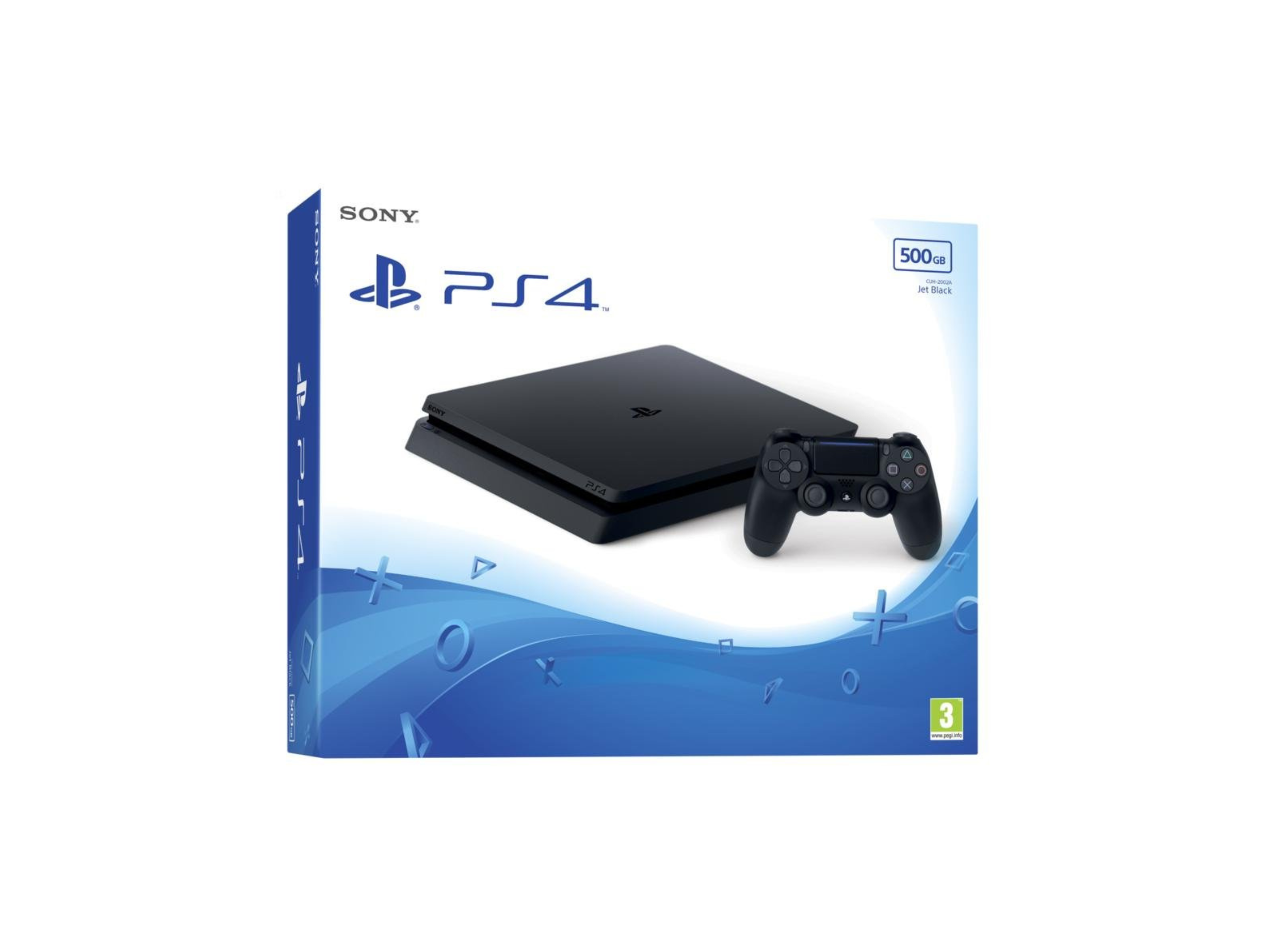 Sony PlayStation 4 Slim 500GB Schwarz, Stromkabel, TV-HDMI-Kabel, USB-Kabel, Original-Controller.